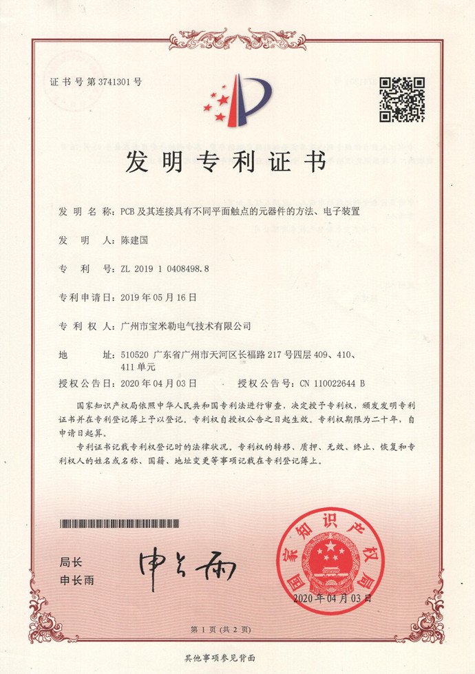 近日,經(jīng)國家知識(shí)產(chǎn)權(quán)局評(píng)定,公司申報(bào)的“PCB及其連接具有不同平面觸點(diǎn)的元器件的方法、電子裝置”研發(fā)產(chǎn)品榮獲發(fā)明專利。這標(biāo)志著我公司在創(chuàng)新發(fā)展的道路上又邁出了堅(jiān)實(shí)的一步。