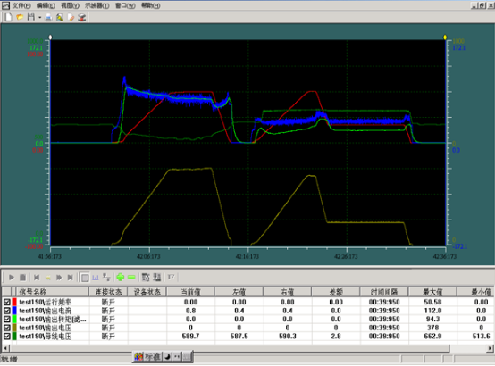 滿載運行測試(42m/min),運行中相關(guān)參數(shù)的動態(tài)捕捉及說明