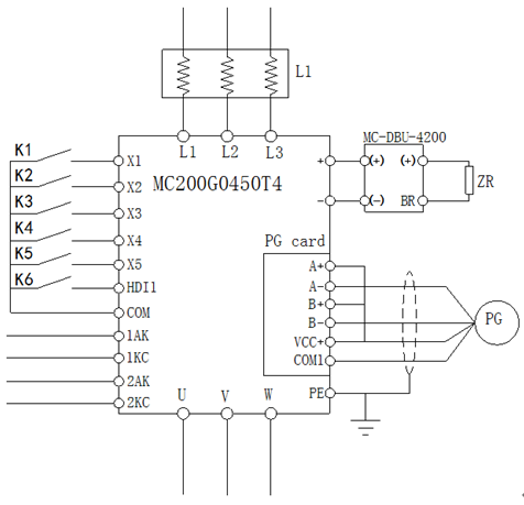抱閘由變頻器控制,接觸器由外部控制器控制 |