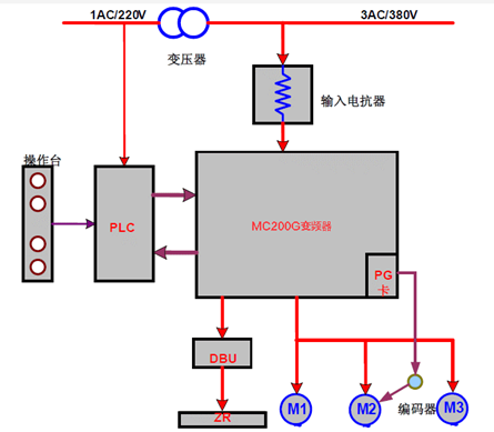 4、 由于此系統(tǒng)采用主電路和控制電路一起供電方式,變頻器參數(shù)輸入后,進行邏輯時序驗證時,要注意現(xiàn)場情況,以防意外發(fā)生。