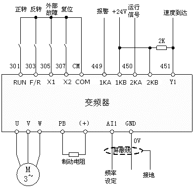 (6)提供多功能的輸出端子信號,例如故障輸出信號,運行中信號,速度到達等輸出信號,能夠很好的滿足系統(tǒng)對于主軸速度狀態(tài)的監(jiān)控;
