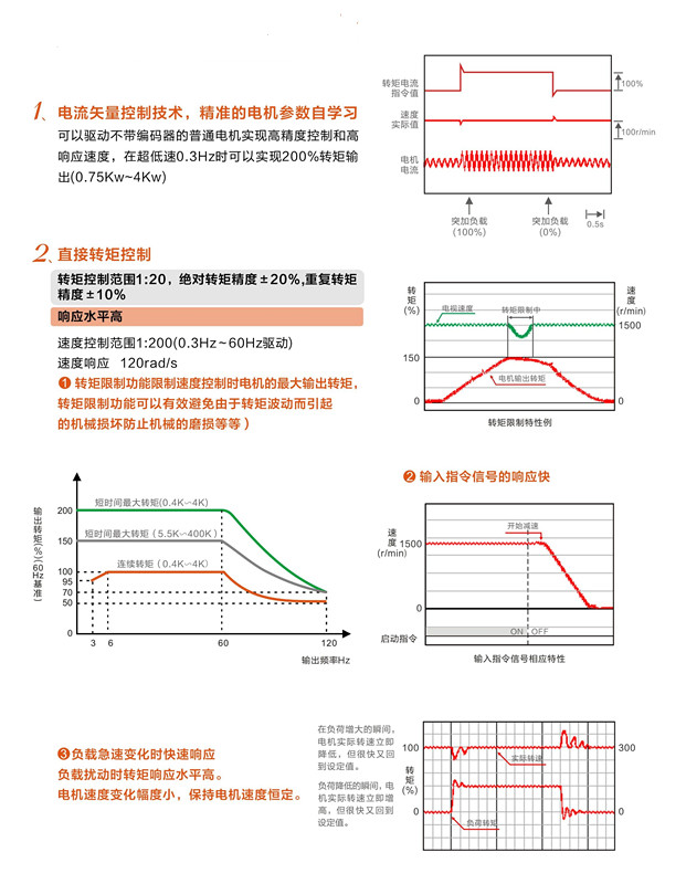 無速度傳感器矢量控制:1:100 |
